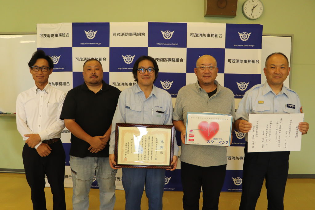 令和7年7月31日(木)美濃加茂ガス会アクシス様、有限会社奥村商店様から、ガス機器資源回収の収益の一部を社会福祉事業や地域振興に寄与することを目的とした活動の一環で、心臓マッサージやAEDの訓練を行うための心肺蘇生訓練キット(スクーマン2)を12台寄贈していただきました。寄贈された訓練キットは救命講習や地域のイベントに活用し、より一層、救命の輪を広めていきます。