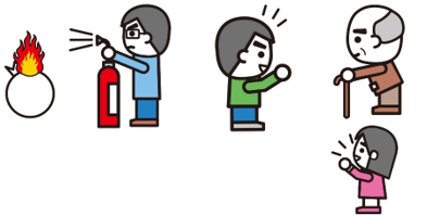 ・いざという時に延焼拡大を阻止するため、家庭用の消火器や地域に設置されている消火器の位置を確認しておきましょう。